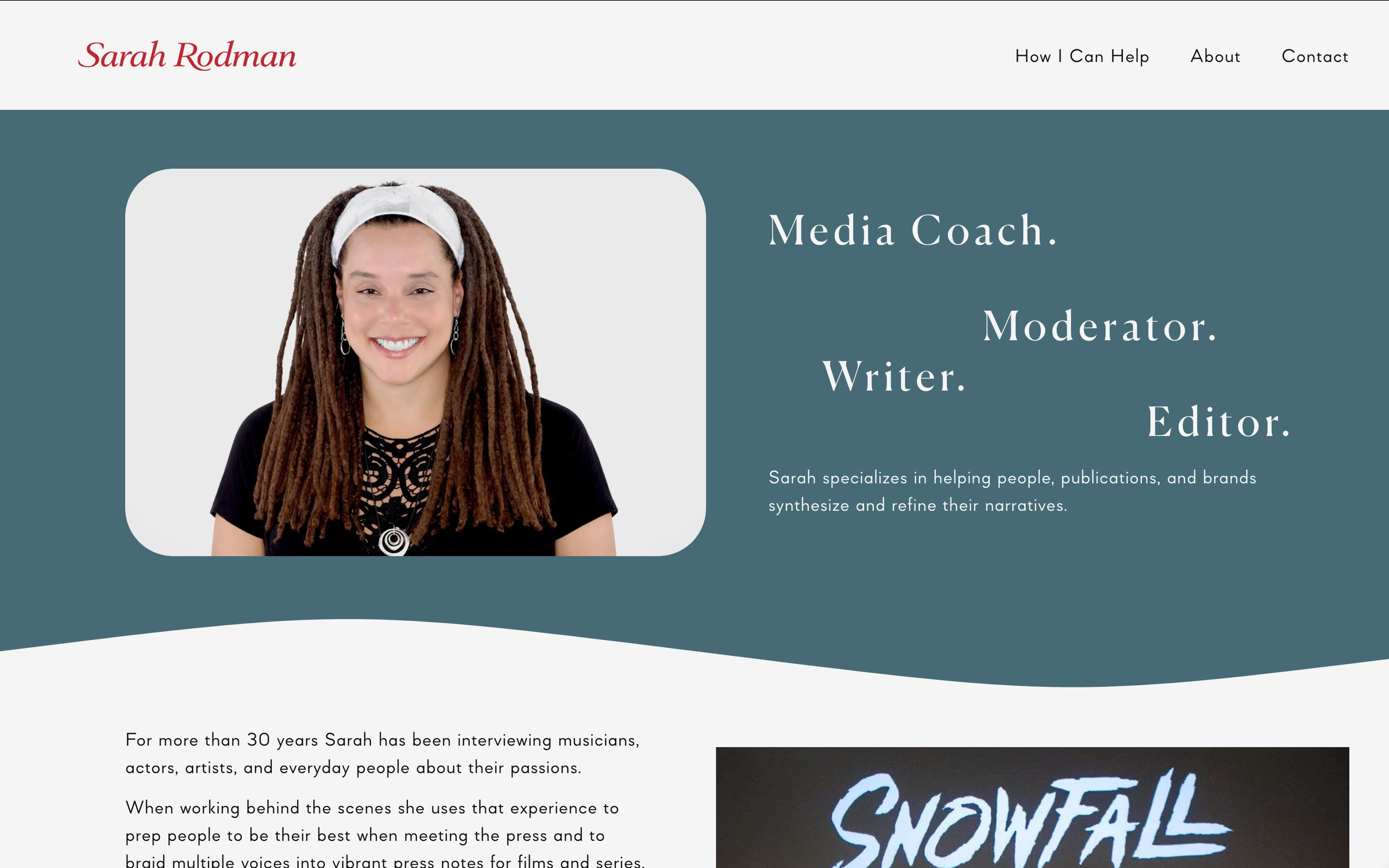 Sarah Rodman has built a career across writing, editing, media coaching, and moderating entertainment panels. She needed a website and brand that could bring those different parts of her work together—something clear, personal, and flexible enough to reflect the full range of what she does.